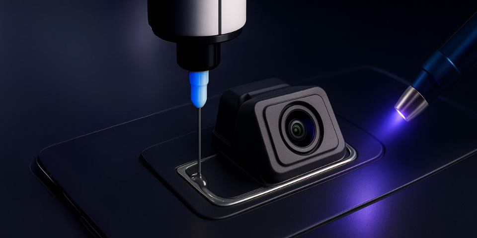 汽车制造中,UV光固化环氧胶用于粘接车灯、仪表盘、反射镜等部件。特别是在一些高要求的部件,如电子传感器或显示器的密封和防水保护,UV胶的优势尤为突出。